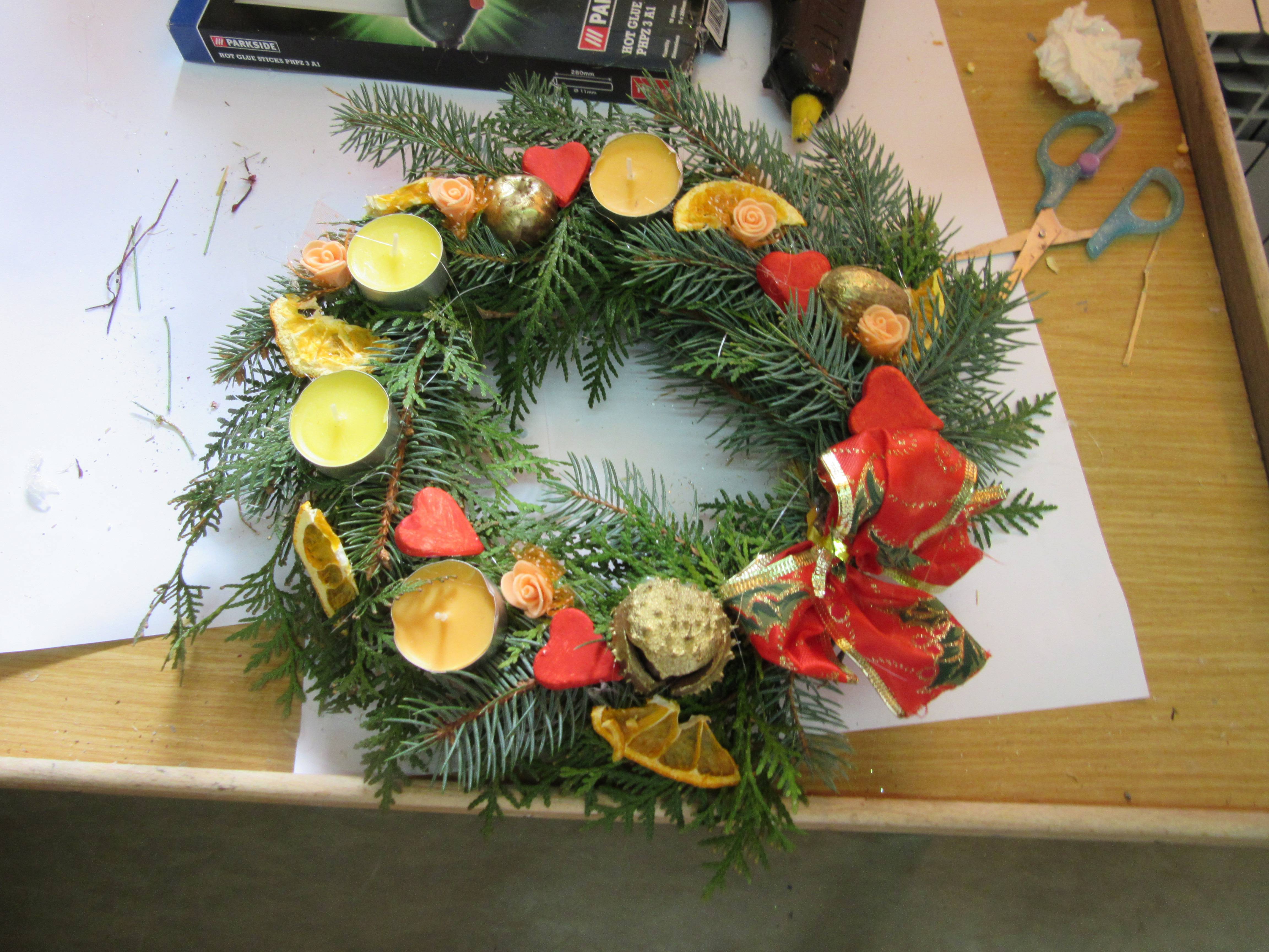 U petak, 27.11.2015. Mravci su s roditeljima u vrtiu izraivali adventske vjenie i tako se poeli spremati za Advent.
